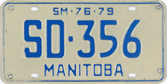 Snowmobile dealers had their own plate series (SD prefix) which always appeared on a full-sized plate with the same 3-year renewal cycles as above from 1970-88.